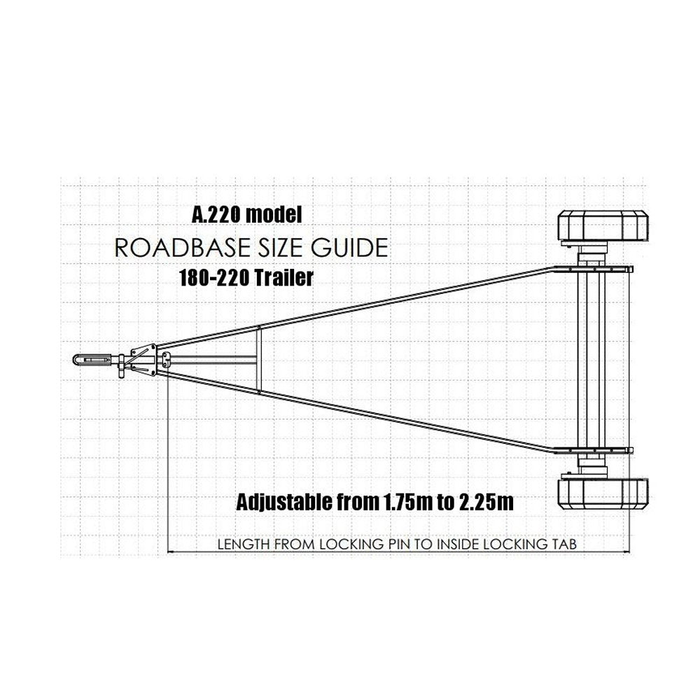 - The trailer is fully extendable from 180 to 220 - adjustable locking pin fitting. - See drawing for more details.