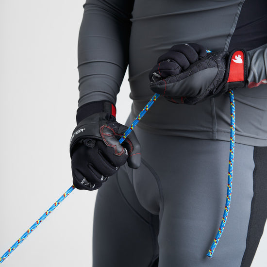 Our warmest glove yet. We have combined the insulating qualities of our All Weather Neoprene glove with the wind protection properties from our AquaPro glove to create the ideal winter glove. Durability is enhanced through clever material selection to enable the glove to last longer. The glove has full fingered neoprene protection that extends further up the wrist to increase blood flow and circulation combined with a tuck away Aquafleece mitten. The mitten is an additional feature that can aid in removing windchill in between races or on the coach boat, when your fingers are not being used - this can then tuck away neatly into a handy pocket on the top of the glove when not in use.