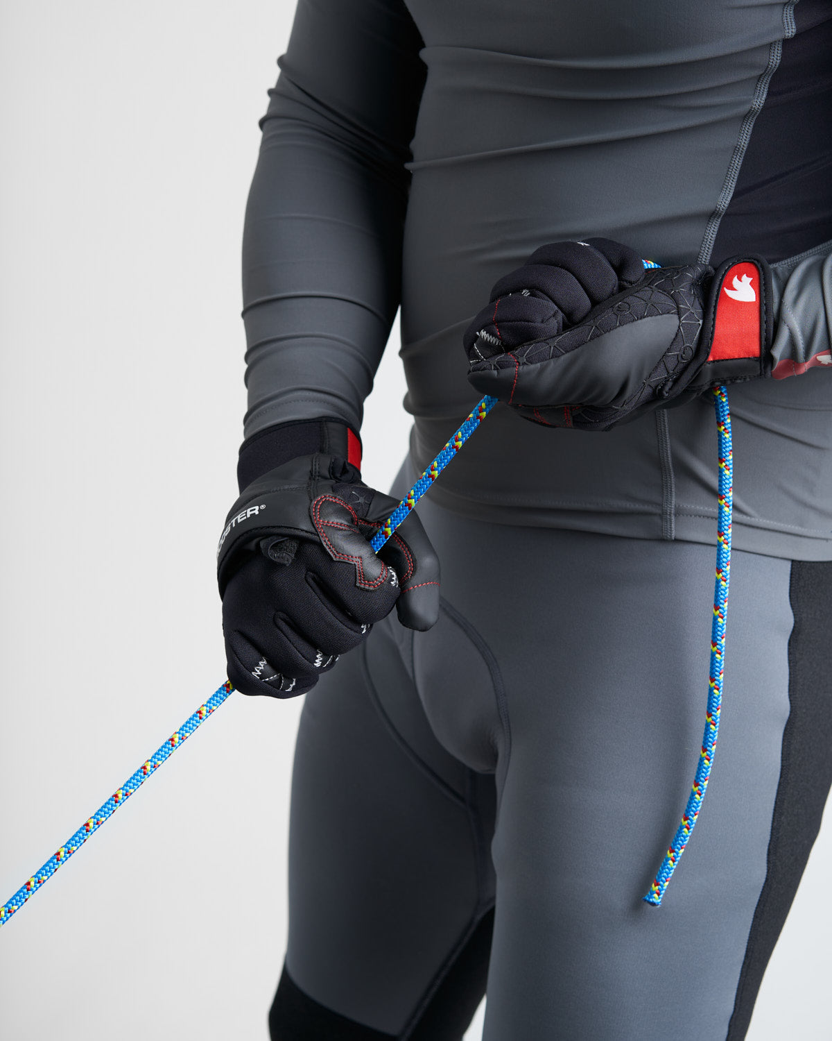 Super Grip coated palms for a positive feel on tiller extensions, sheets and control lines