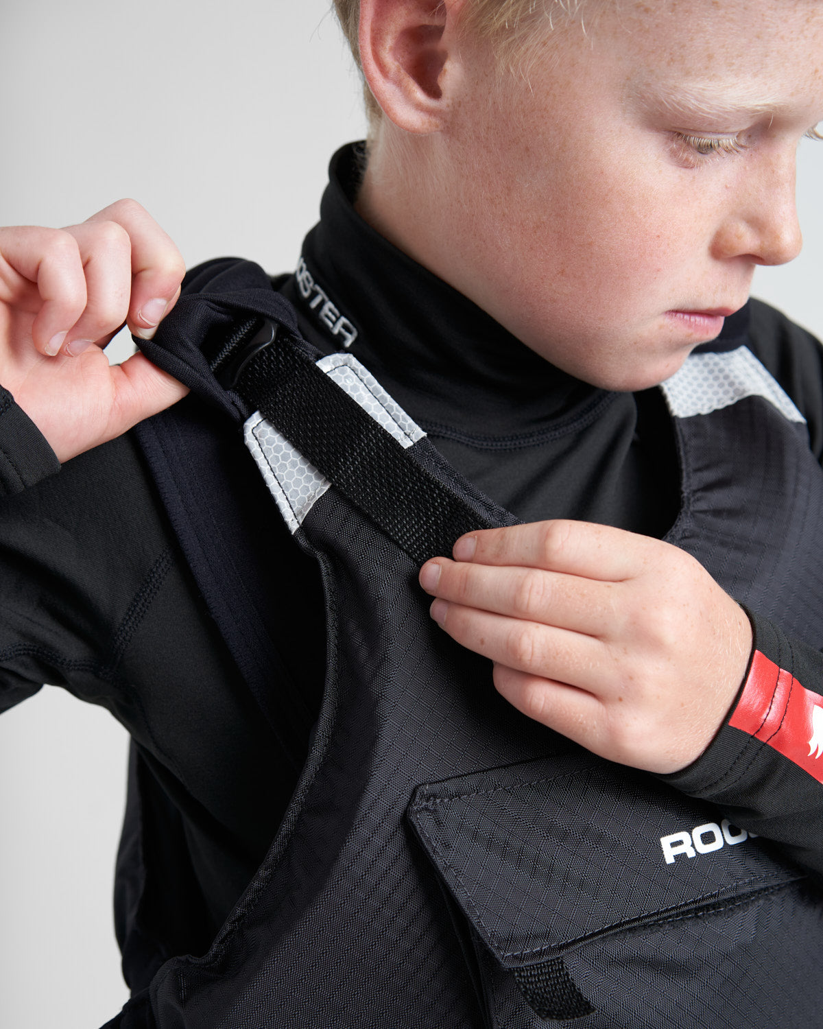 The super comfortable, compact design of the Rooster® Diamond Overhead Buoyancy Aid features a high cut waist to allow unrestricted movement and easy access to a trapeze hook. The highly adjustable shoulder and waist straps ensures a great fit for different body shapes, while the recessed, neoprene-covered buckles removes the risk of snagging on ropes and rigging. Strong, rip-stop fabric ensures longevity and provides greater wear resistance with reflective panels for improved visibility. The front pocket is large enough to keep a spare hat, safety knife, tape and snacks, with an integral hook and mesh pocket for your keys, shackles and other spares. The Rooster® Junior Diamond Buoyancy Aid is approved to ISO CE12402-5 level 50 safety standards and comes with leg straps.