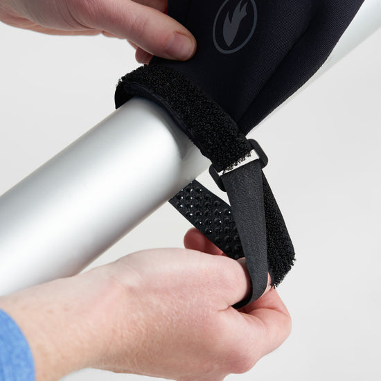 Neoprene sleeve bottle holder with adjustable webbing straps at each end to fit around different circumferences of tube. Can be attached to parts in the boat to store drinks when sailing. The bottle holder features an oval hole to be able to slide the bottle in with one hand. Can fit up most bottle up to 1L in size. The Joey bottle holder is approx 38cm long