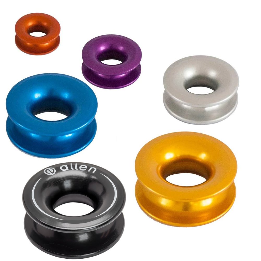 Thimbles are a great alternative to blocks when there is a need for high static load capabilities. Allen high load thimbles come coated in Teflon to help reduce friction. Machined from aluminium and anodised in a choice of 6 colours, black, blue, silver, purple, gold and orange.
