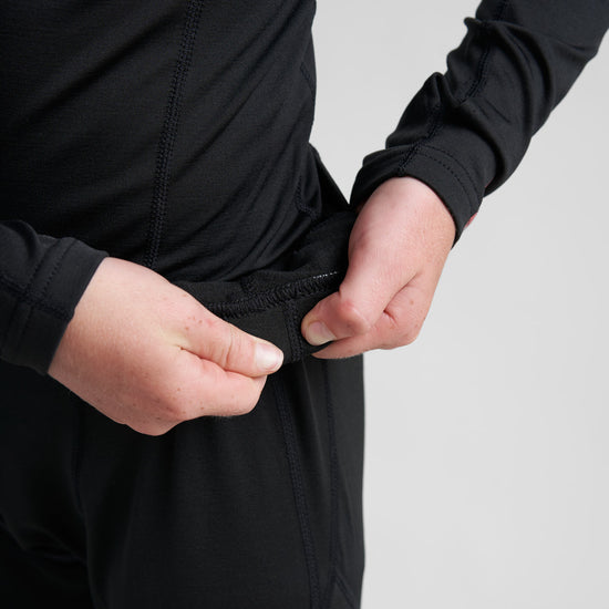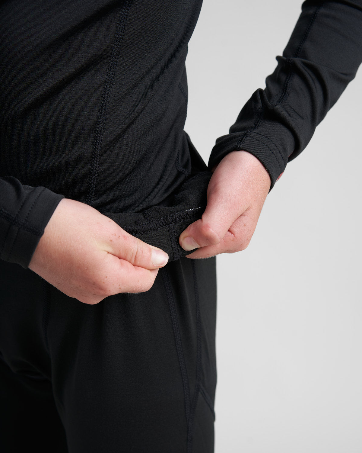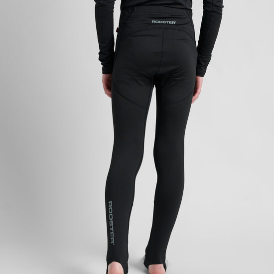 The Polypro leggings have been designed to fit to a large range of body shapes and stay in place, through a pre-shaped panel layout and a contoured waistband, which sits higher at the back. As this product is designed to be the ultimate base layer, we have added in discrete foot stirrups at the ankles to keep them in place, and a relief flap opening at the crotch.