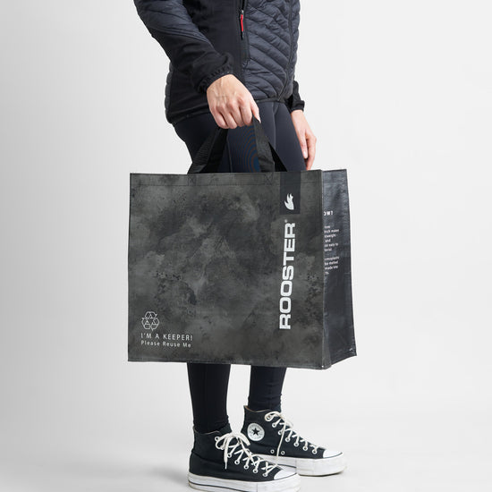 The Rooster I'm a Keeper Bag is your simple and durable 'bag for life', with webbing handles and woven waterproof material, it is great for wet kit, dry kit, daily shopping or dog toys. Folds up nicely to add to your collection of bags that you try to remember to take to the shop. Dimensions: 450mmx400mm
