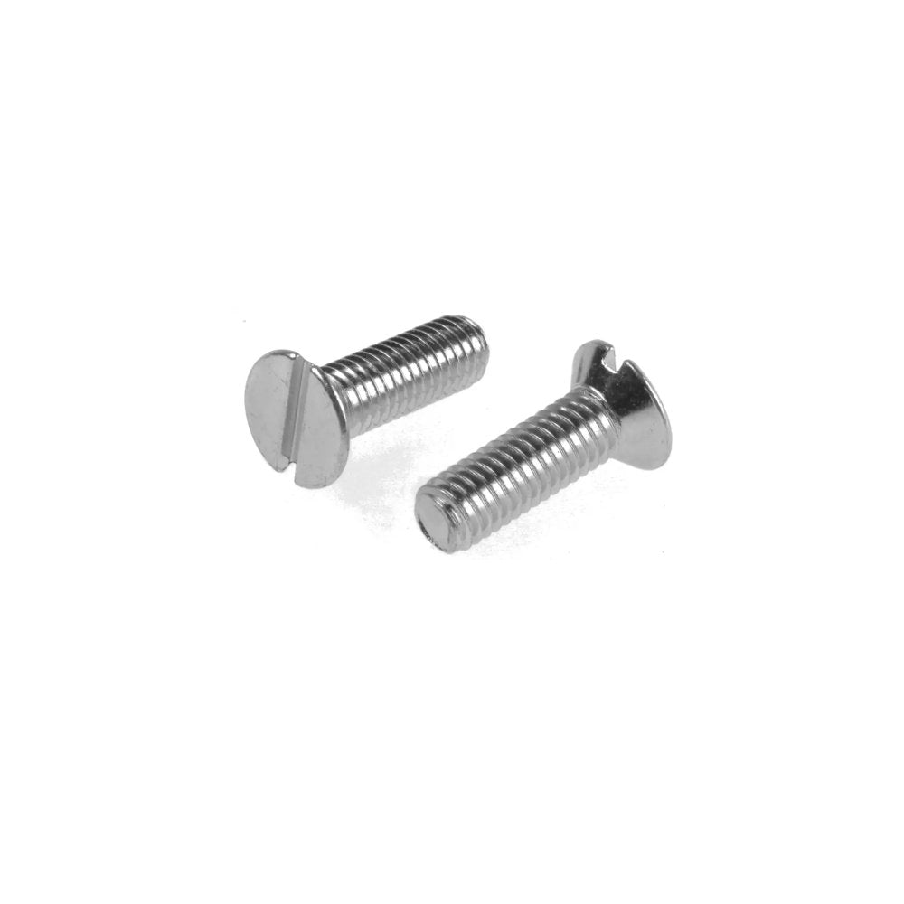 A countersunk head machine screw with a metric thread. The fully threaded fixings have a slotted drive type allowing for easy tightening with a flat blade screwdriver. Price per single item.