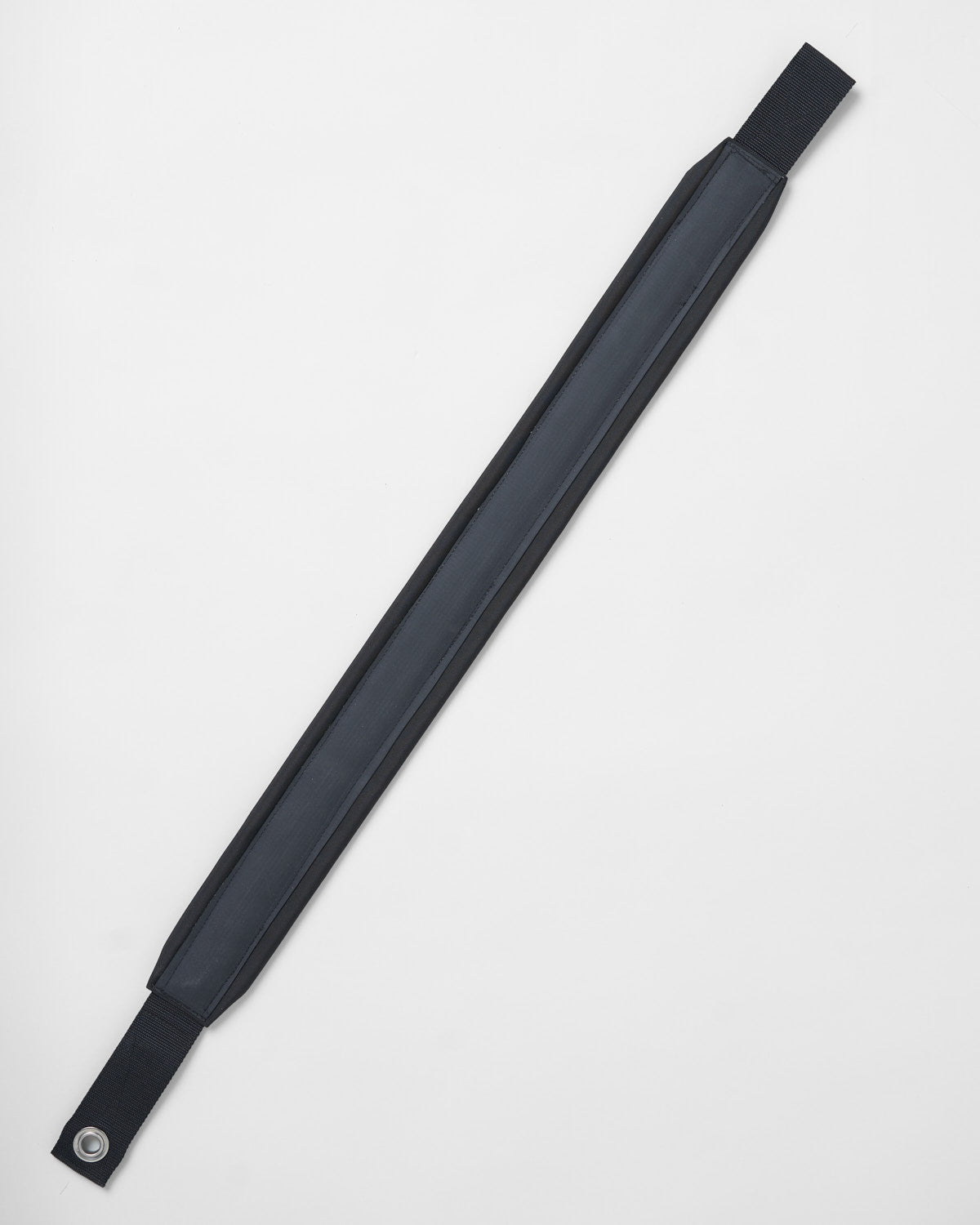 This toestrap measures 1050mm from the bearing surface of the eye to the very end of the webbing 'screw on plate' end. The pressed eye is ideal for attaching a suitable block or rope for the front adjustment.