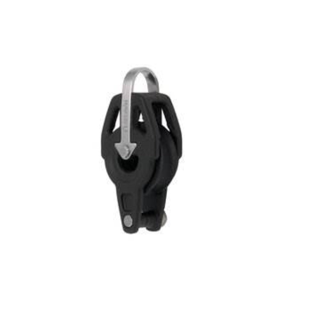 Seldon 403-101-13R Single Becket Strap Block featuring Stainless steel ball bearing races, stainless steel ball bearings and glass fibre reinforced sheave for best bearing strength even under high dynamic loads. Acetal bearing cage to prevent ball-to-ball friction and to reduce weight made from glass fibre reinforced composite.