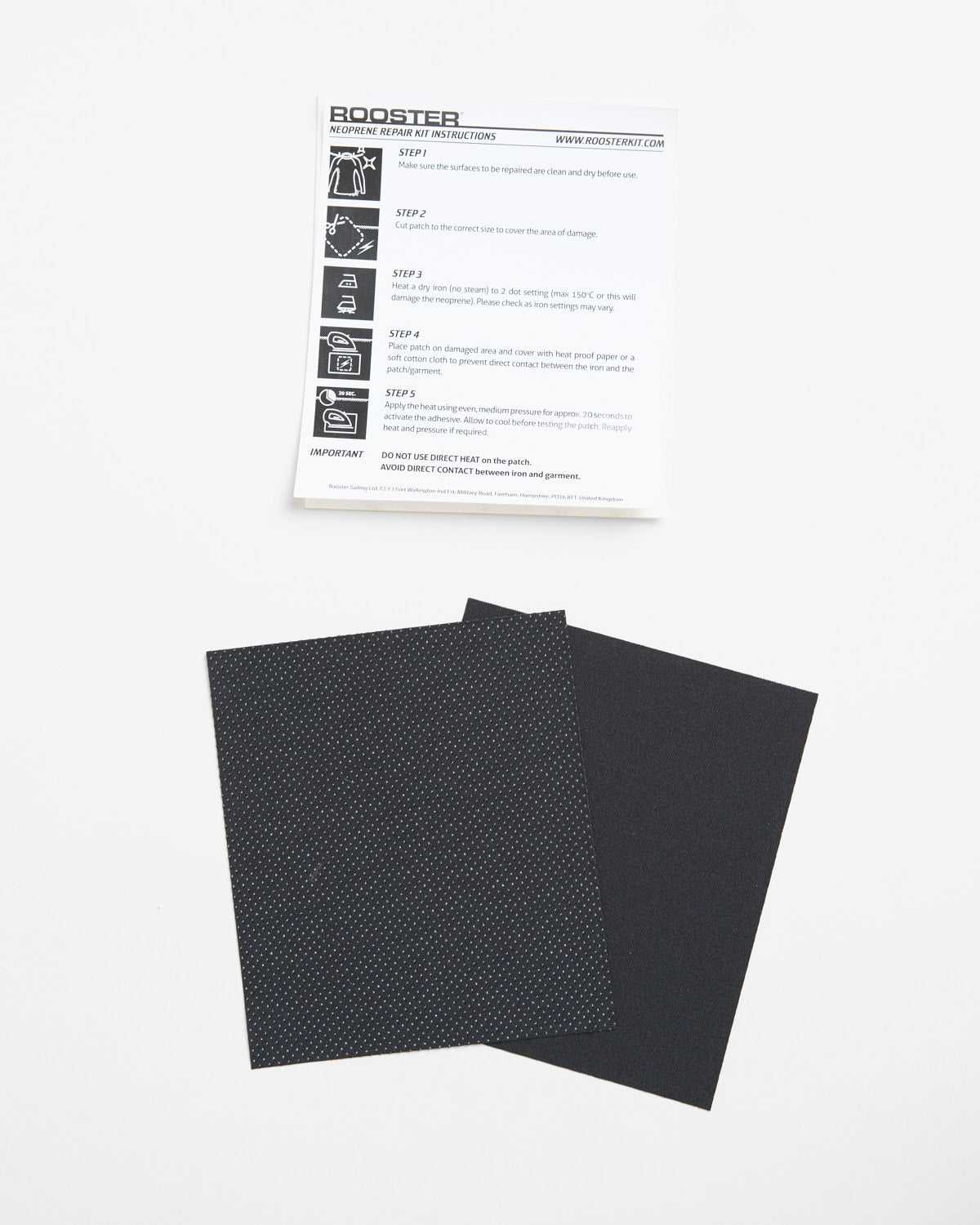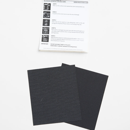 A simple and effective way to repair holes and wearing spots on your Rooster Wetsuit.