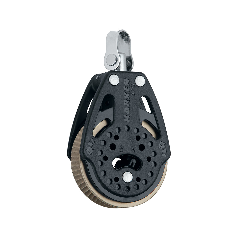 Harken 2166 57mm Ratchet Block with swivel and 1.5 times grip; breeze-on/puffs; 15:1 holding power.