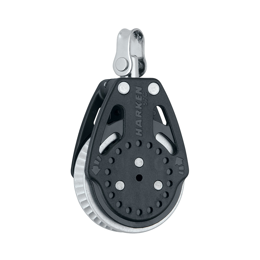 Harken 2168 57mm Ratchamatic Block with swivel and 2 times grip: breeze-on/puffs; 20:1 holding power.
