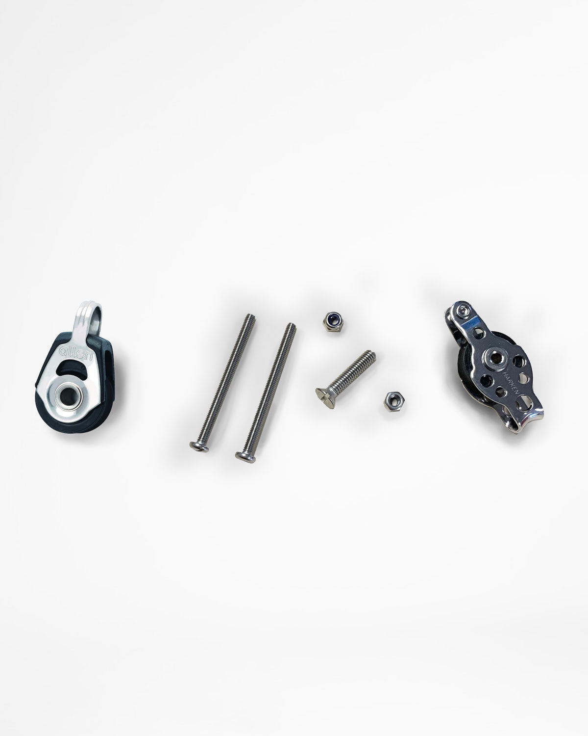 The Allen block fits into the threaded bar on the gooseneck and takes the inhaul nicely and the Harken 405 fits onto the gooseneck of your Europe Mast - some drilling is required for this one.