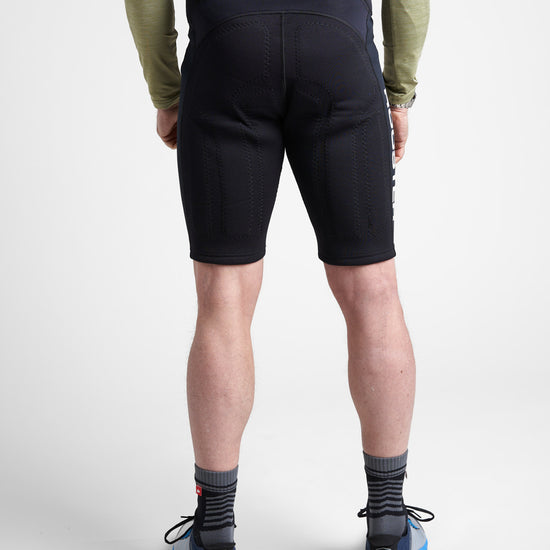 Multi-function heavy weight 410gsm spandex shorts with dual-layer contoured neoprene padding Duratex II seat panel. There is capability to add ProHike pads into the seat part through a Hook & loop attachment at the inside surface. The fit has been developed for performance through a high curved waist profile with strong elastic tab adjustment pulling around the sides – perfect to get the perfect secure fit on a range of body shapes. Through the use of 2 panels above the Duratex II seat panel, position of the waistband is not compromised and movement is maximised especially when worn in conjunction with ProHike pads, which add weight.