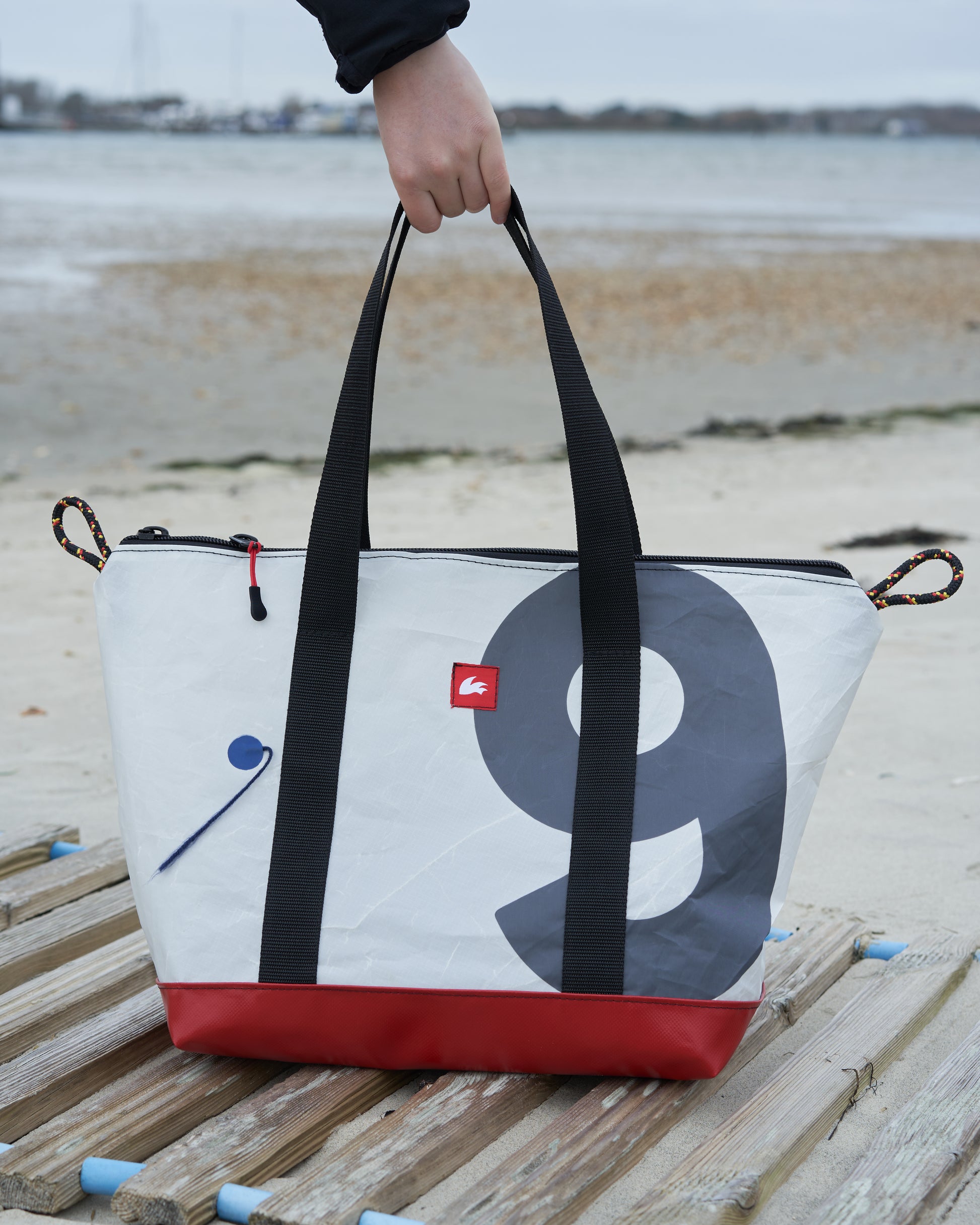 This eco-friendly shoulder/hand bag has been created using upcycled sails and Rooster rope offcuts in collaboration with Sandy Point Watersports at Hayling Island, on the South coast of England. We're thrilled about this collaboration and the opportunity to support a local business near the sea, who share our enthusiasm for the sea and values.