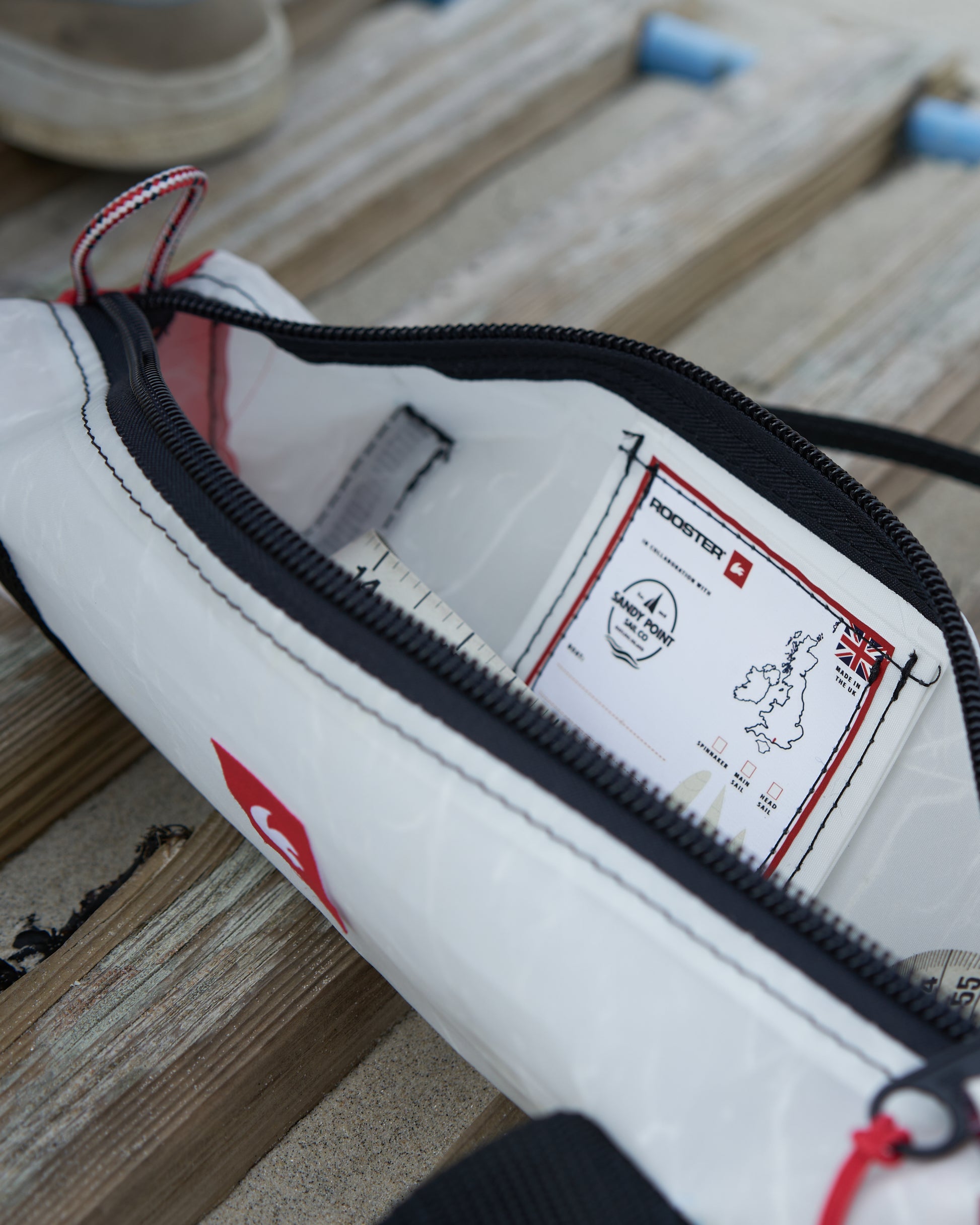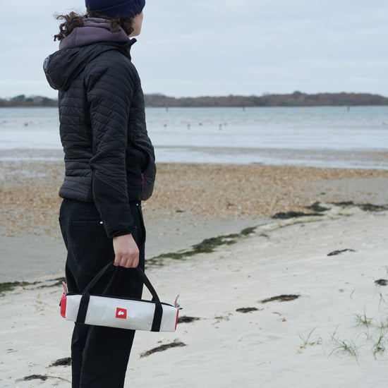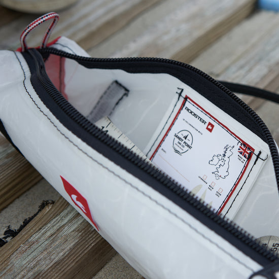 This eco-friendly handy bag is perfect for splicing tools or for use as a pencil case – also great for a bag for your lunch roll or baguette. It has been created using upcycled sails and Rooster rope offcuts in collaboration with Sandy Point Watersports at Hayling Island, on the South coast of England. We're thrilled about this collaboration and the opportunity to support a local business near the sea, who share our enthusiasm for the sea and values.