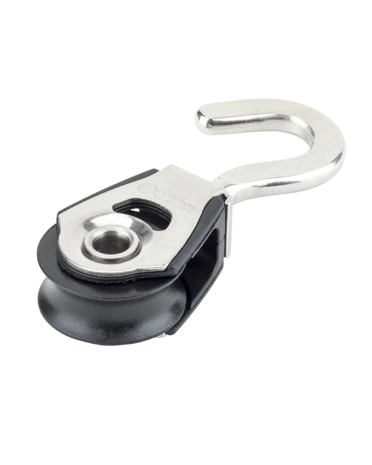 Swivel Hook – A built-in swivelling hook allows this block to be easily attached or removed as well as swivel to aline with pulling forces that may change direction. The swivel cannot be locked.
