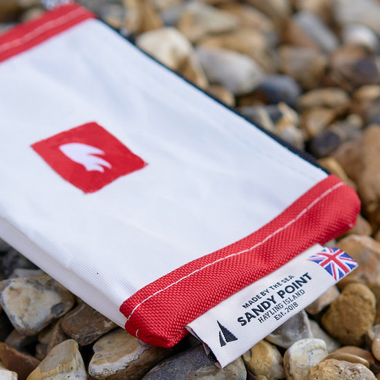 Created using upcycled sails and Rooster rope offcuts in collaboration with Sandy Point Watersports at Hayling Island, on the South coast of England. We're thrilled about this collaboration and the opportunity to support a local business near the sea, who share our enthusiasm for the sea and values.