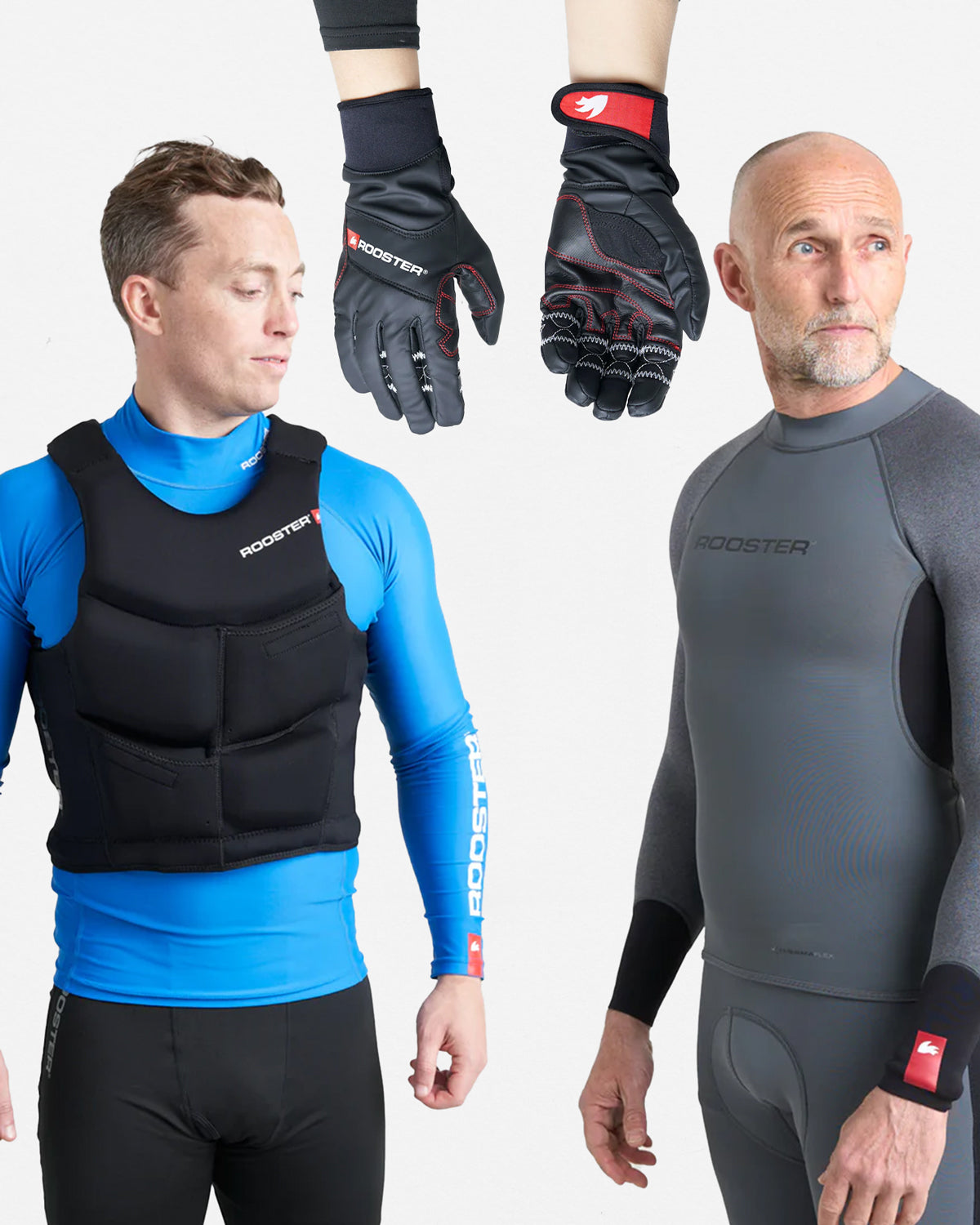 - Raw-edge neck and minimalist cuffs reduce bulk under buoyancy aids and gloves